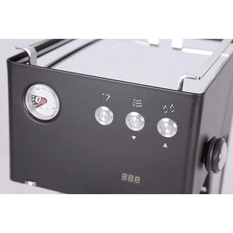 Quick Mill POP! i sort er et godt valg, hvis du vil have en stilfuld maskine, der både ser godt ud og leverer præcise resultater. Det matte sorte kabinet giver et moderne og eksklusivt udtryk – og funktionerne gør det muligt at tilpasse hver kop efter din smag. Udover mat sort fåes den også i blankpoleret stål.
