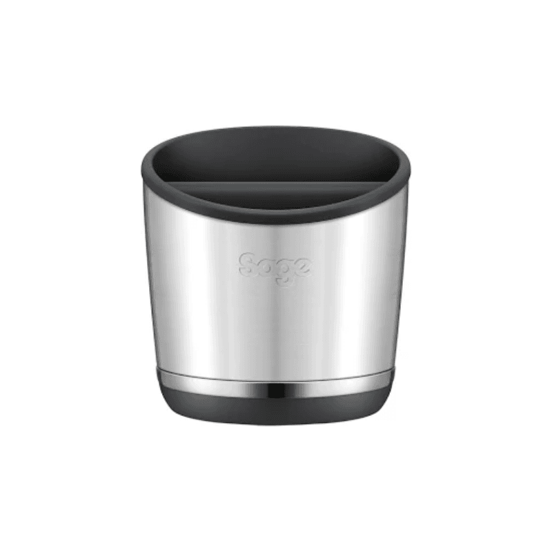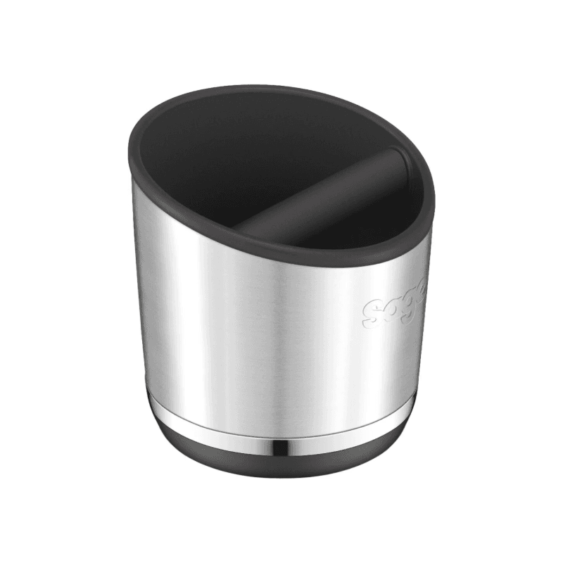 Sage The Knock Box kombinerer funktionalitet og design i ét praktisk redskab til kaffeelskere. Med sin robuste konstruktion og skinnende finish passer den smukt ind i enhver køkkenindretning. Den brede base giver stabilitet, mens den aftagelige stang i midten gør det nemt at slå espressopucken. Stangen er beklædt med silikone, hvilket sikrer støjsvag og skånsom brug, samtidig med at den beskytter dit portafilter mod skader. Knock Boxen er stor nok til at rumme flere pucks, så du kan brygge flere kopper kaffe, inden du behøver at tømme den. Den er også nem at rengøre, da både stang og inderskål kan fjernes og vaskes.